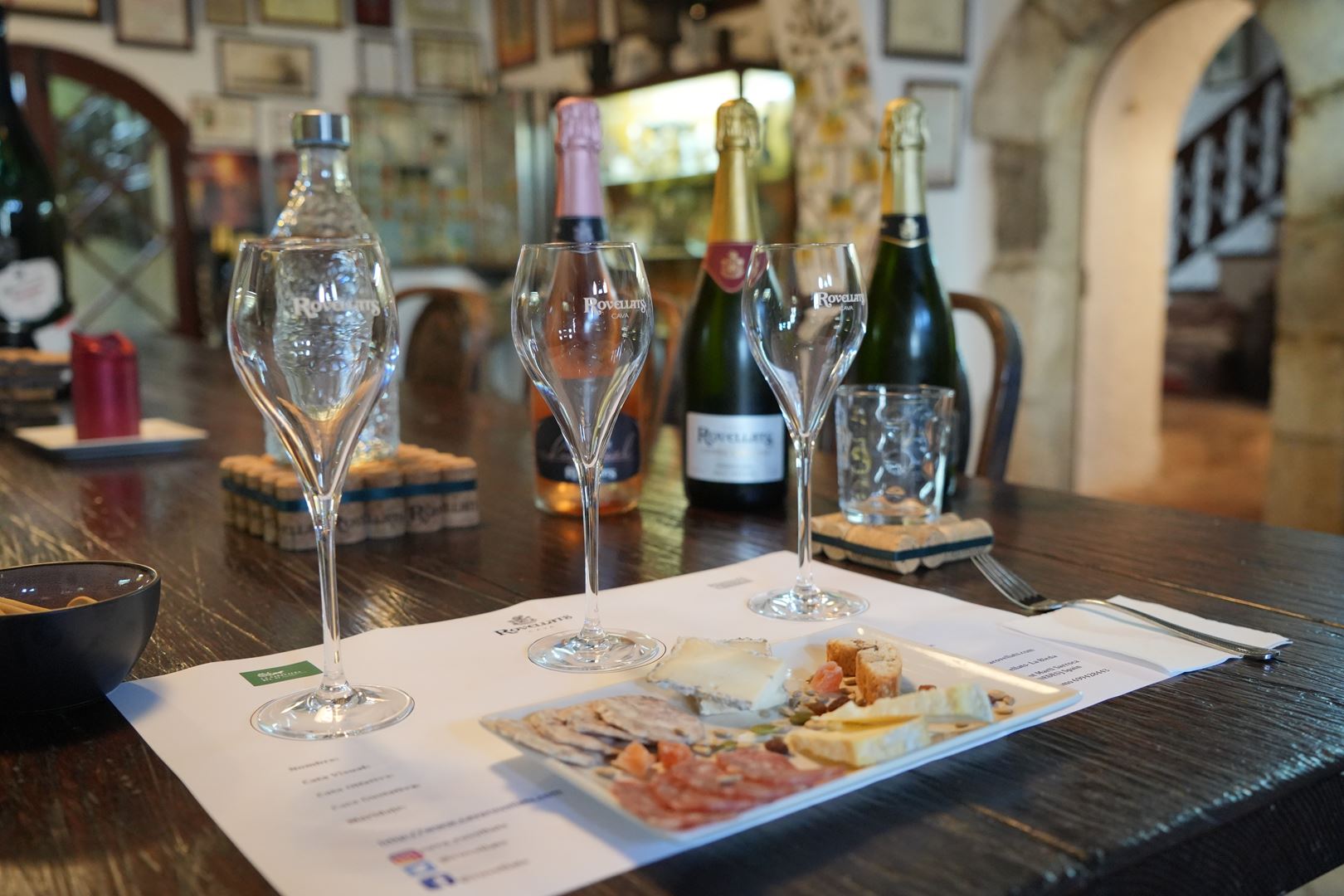 Al final de la visita disfrutamos de una cata de tres cavas reserva de estilos bien diferentes: nuestro Imperial Brut, el Imperial Rosé Brut y el Cuvèe Especial Brut Nature, acompañados de un pequeño tentempié.